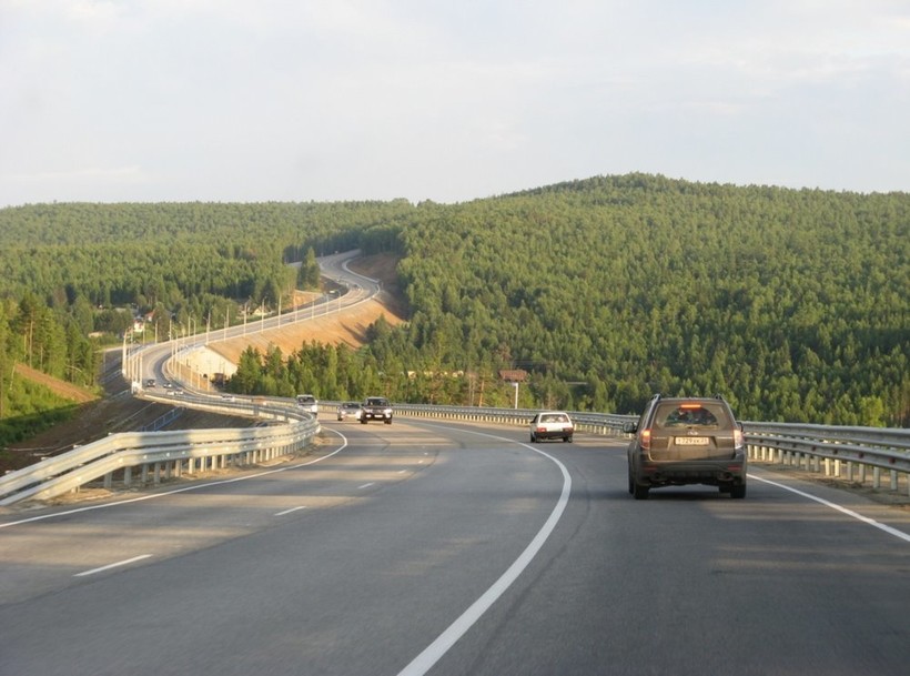 После Красноярска покрытие почти везде нормальное, проблемных участков всего несколько. Рекомендую в Канске ехать через город, а не по объездной, поскольку там гравийка, а в городе асфальт, хоть и с ямами. Также есть несколько километров плохой дороги от Ангарска до Иркутска. А во всем остальном здесь очень круто. Много кафе и заправок, отличная дорожная разметка. Я меньше сотни не ехал здесь.