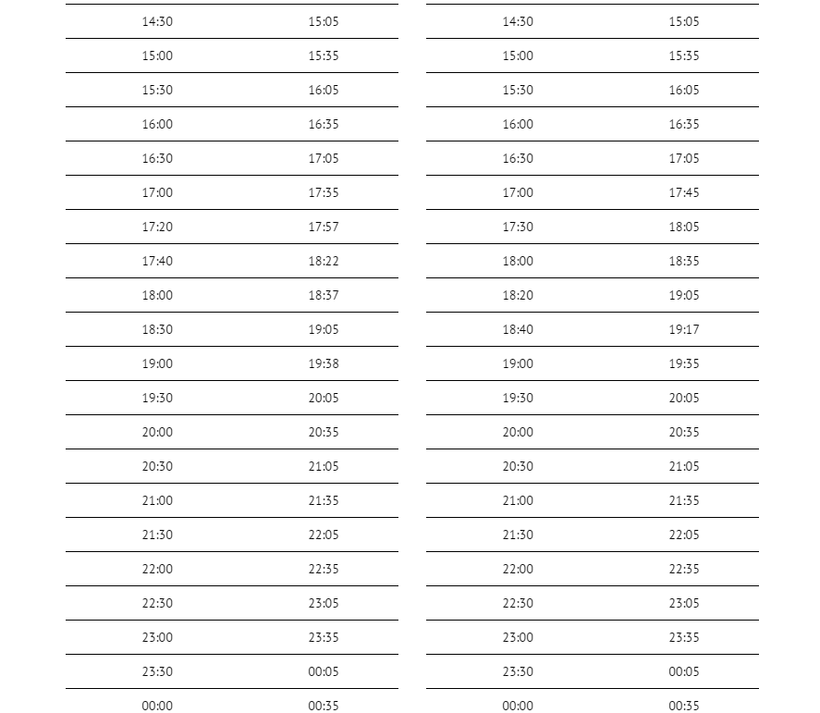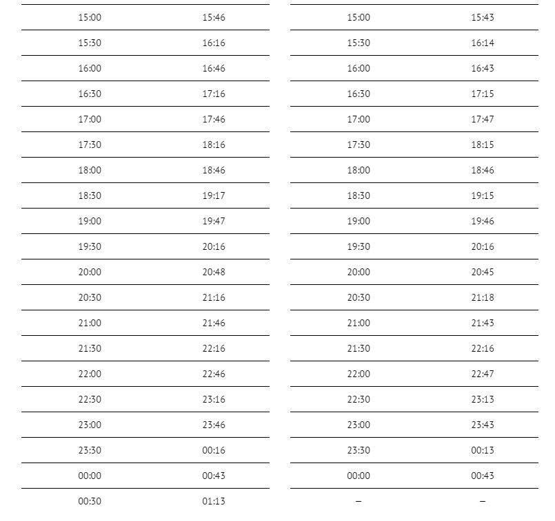 Время, которое вы потратите на дорогу, колеблется от 40 до 60 минут. Здесь работают городские проездные билеты. Автобус ходит с 5:30 и до 0:50. Едет без дополнительных остановок.