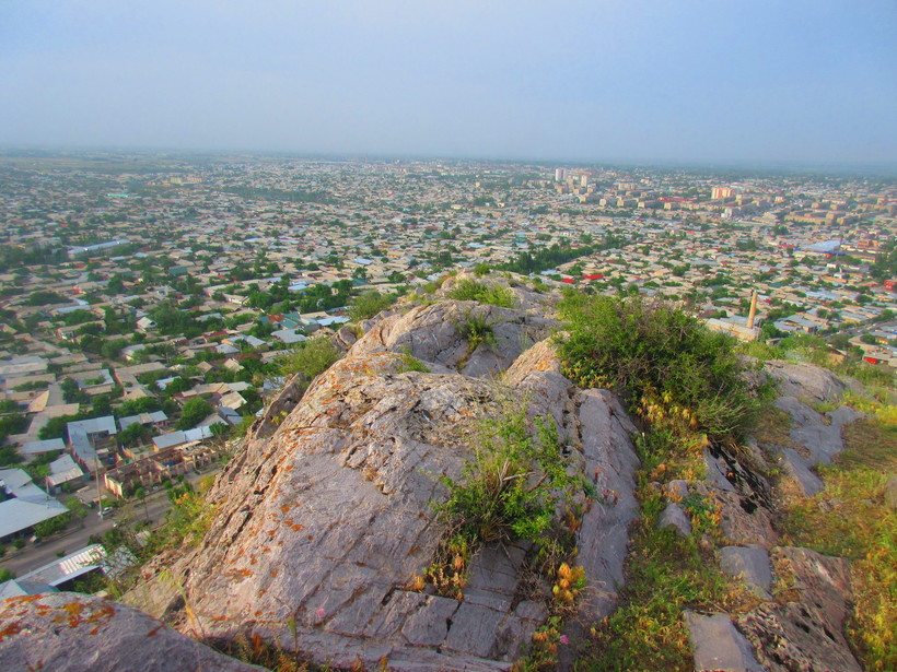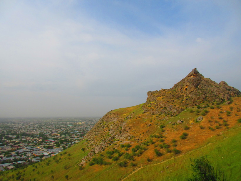 Готовят там вкусно и цены приятно радуют. Поев манты, решили забраться на гору Сулайман-Тоо, возвышающуюся над городом в самом его центре.