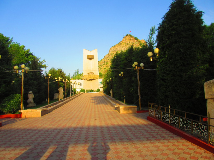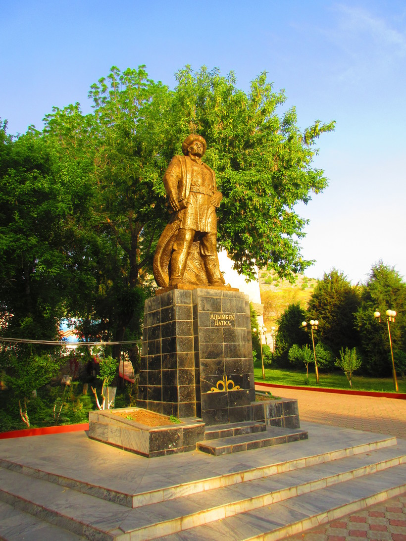 Оставили вещи и пошли гулять по Ошу. Сначала встретился мини-парк с монументом Алымбеку Датка.