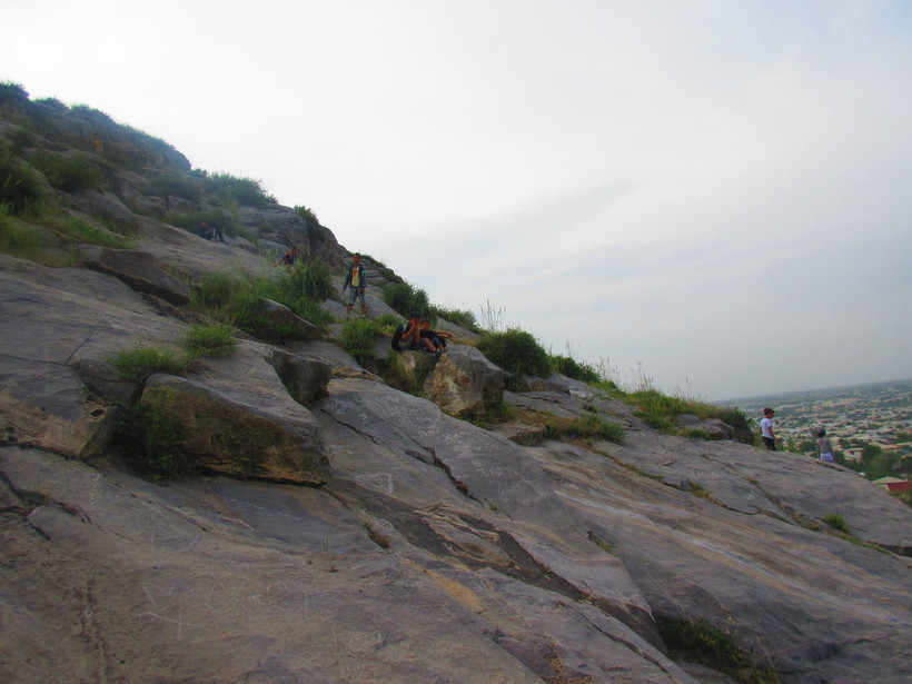 При подъеме стали свидетелями развлечения местной ребятни, они на своих кроссовках скользят по отшлифованному каменному склону. Поверхность камня в местах скольжения аж блестит на солнце.