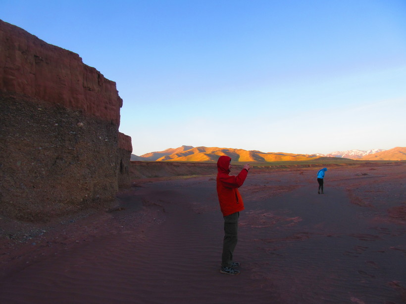 Место действительно великолепное, можно гулять по красному песку, любоваться белоснежными вершинами Памиро-Алая , и жалеть что в мае из-за полноводных рек к хребту ближе не подобраться. Ночь была очень холодной, нам выдали теновый обогреватель, чтобы мы натопили в комнате перед сном, оставлять на ночь работающий тен не безопасно. Перед сном мы вышли из дома во двор и обалдели от красоты ночного неба, за такой вид можно душу продать. Поселок находится высоко в горах (примерно 3000 м над уровнем моря) и на ночь отрубается абсолютно все освещение, поэтому звёздное небо настолько чётко видно, что чувствуешь насколько необъятен космос. Через некоторое время шея устает от длительного смотрения вверх, но уходить не хочется и только холод заставляет тебя вернутся в теплую постель.