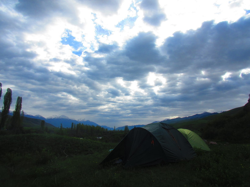 Как внезапно подъехал УАЗик, из которого вывалился смотритель парка и начал просить дополнительных денег за ночевку в палатках, палатки были нашими и нас возмутила эта наглость, потому что на въезде ночью нас об этом никто не предупредил. Вокруг нашей машины сразу набежали такие же недовольные туристы, естественно все ночуют в палатках, но у киргизов свои мысли на этот счет. Мы решили не скандалить и заплатили, но "осадочек остался".