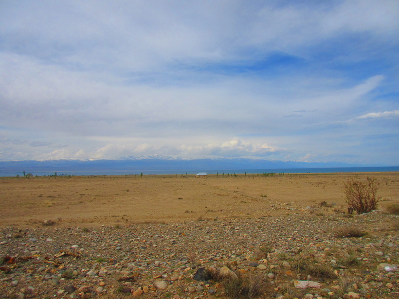 Окончательно замерзнув, поехали на пляж у озера, где и ночевали в палатках. Утром впервые попробовали искупаться в Иссык-Куле, но несмотря на начало мая (температура воздуха около 25 цельсия) вода очень холодная, на вкус менее солёная чем морская зато прозрачно чистая.
