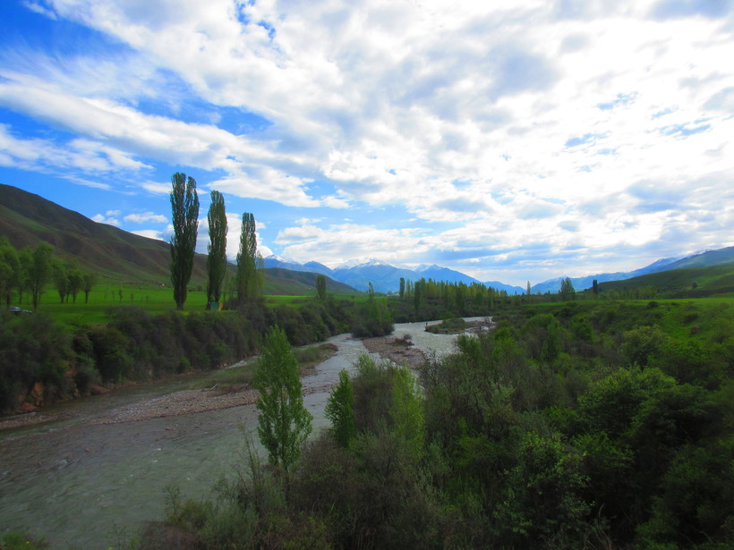 На въезде оплатили плату, не помню какую, но как и все в Киргизии недорогую. Место выбирали в темноте, поэтому решили далеко не углубляться, как только нашли приличную полянку, поставили палатки и сели возле костра поболтать о планах. Утром, позавтракав и собирая вещи любовались здешними пейзажами. Несмотря на увлекательнейшую неделю в Киргизии, в душе всегда находилось место для наслаждения природой прекрасной страны.