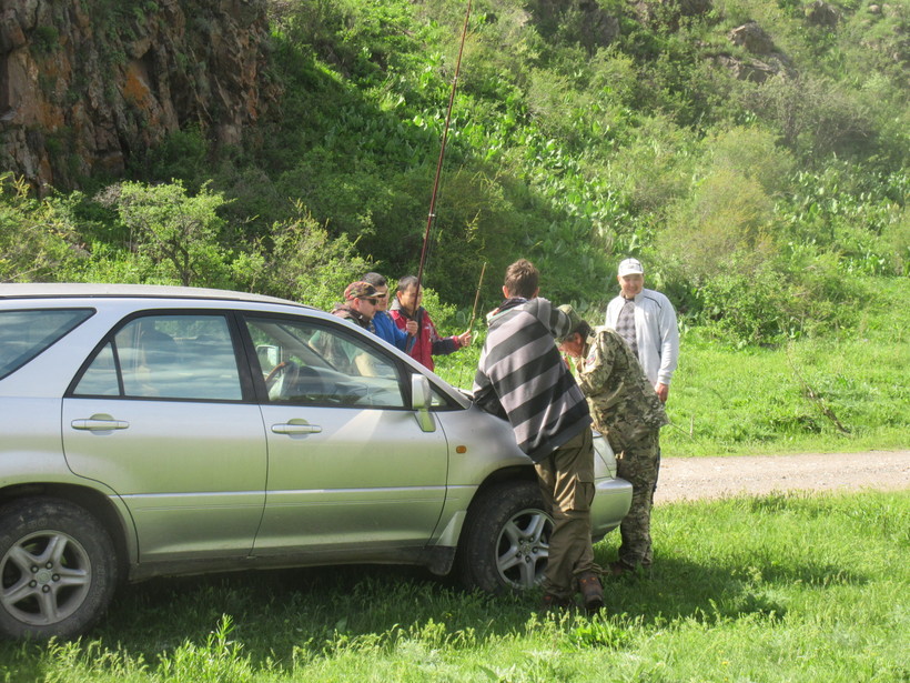 Как внезапно подъехал УАЗик, из которого вывалился смотритель парка и начал просить дополнительных денег за ночевку в палатках, палатки были нашими и нас возмутила эта наглость, потому что на въезде ночью нас об этом никто не предупредил. Вокруг нашей машины сразу набежали такие же недовольные туристы, естественно все ночуют в палатках, но у киргизов свои мысли на этот счет. Мы решили не скандалить и заплатили, но "осадочек остался".