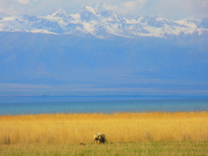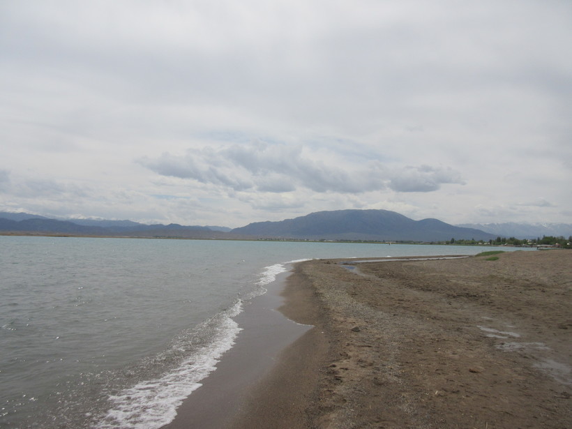 Окончательно замерзнув, поехали на пляж у озера, где и ночевали в палатках. Утром впервые попробовали искупаться в Иссык-Куле, но несмотря на начало мая (температура воздуха около 25 цельсия) вода очень холодная, на вкус менее солёная чем морская зато прозрачно чистая.