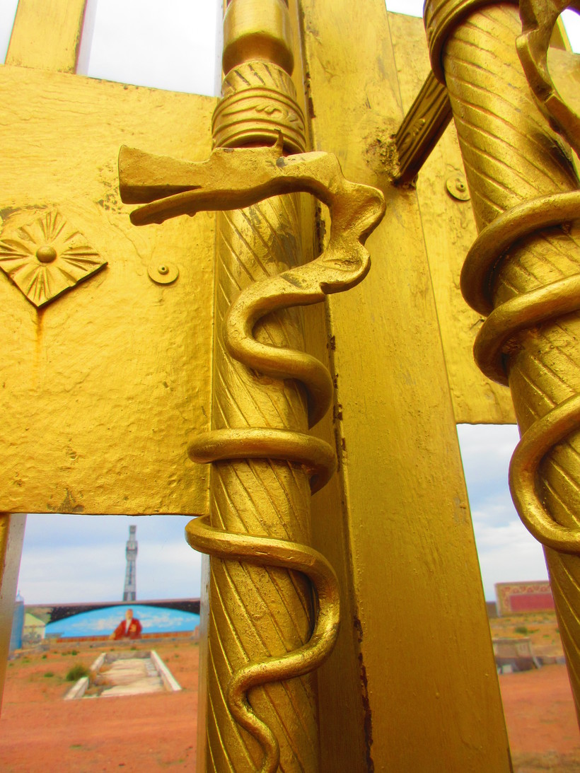 Под вечер приехали в жутко красивый парк (скорее жуткий, чем красивый). Об этом месте ходит множество легенд, но производит оно удручающее зрелище. Создается впечатление, что его так и задумывали жутковато-печальным в противовес его "брату" Рух Ордо из Чолпон-Ата.