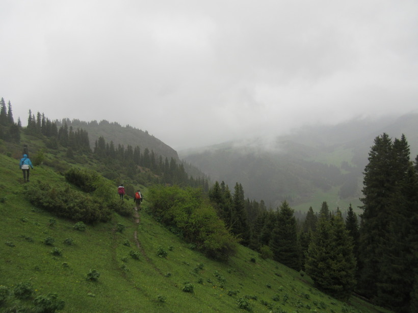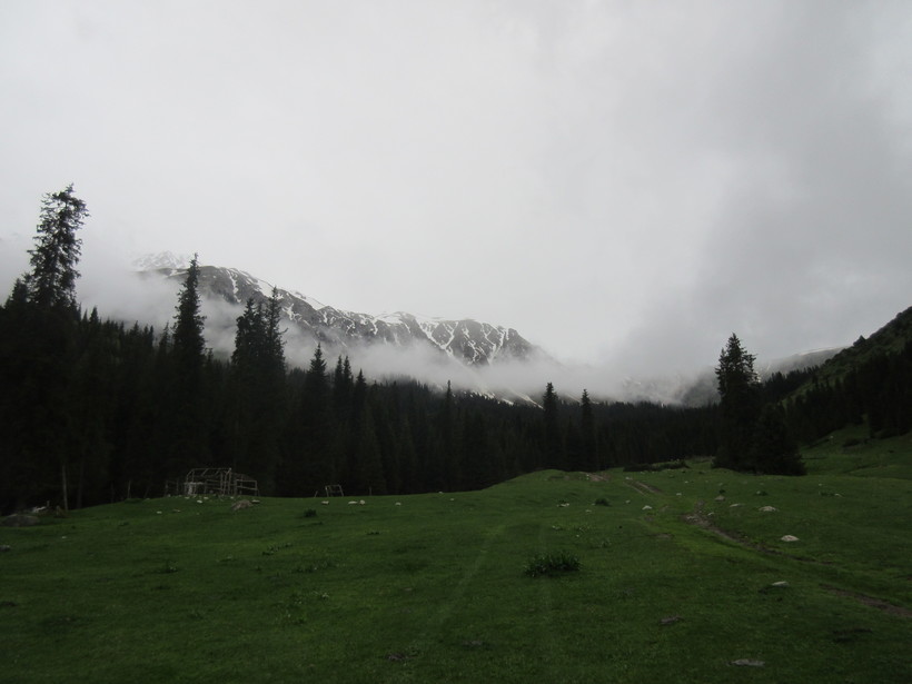 Дождь и туман только добавляли шарма местности и служили помощниками медитативному состоянию моего разума. Нагулявшись и как следует промокнув, вернулись к автомобилю и уехали в поселок в начале ущелья. Заночевали в местном гостевом доме, обстановка была деревенской, но по традиции Киргизии ужин и завтрак входили в стоимость, которая и так была не высокой. Зато возможность просушить вещи и попариться в сауне (за отдельную плату) радовала до глубины души.
