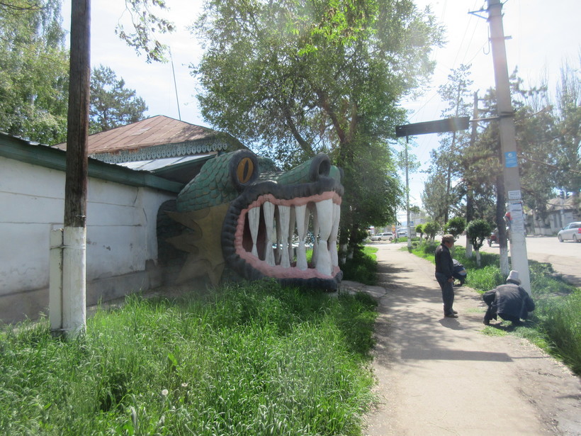 Красивейший парк мог стать достоянием искусства Киргизии, а стал скорее памятником пофигизму его народа. В него водят экскурсии, так же есть возможность самому пройти на территорию всего за 40 рублей, но мы приехали поздно, поэтому любовались через забор. Вдруг мы поняли, что в Каракол сегодня не успеваем и решили заехать в ближайшее село Тосор. На берегу озера стоит лагерь юрт, где достаточно дорогие цены за ночевку, неудивительно, что нам встречались только иностранцы. Мы уже до этого ночевали в юрте и не испытывали дикого интереса к этому явления, поэтому завернули обратно в село.