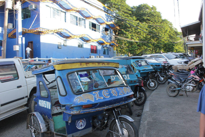 Из одноименного аэропорта добраться в центр Пуэрто-Принсеса можно за 10 минут на тук-туке, и фактически тук-тук просто обогнет взлетно-посадочную полосу. Кстати, замечательная особенность филиппинских островов, которую я заметила – на каждом острове свои тук-туки, сваренные по особенной технологии. Здесь они вот такие широкие, и отличаются от тук-туков в Маниле или Боракае.