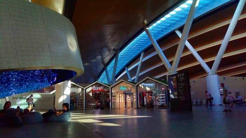 Сразу же, как только вы заходите в терминал, вас встретит металлоискатель и лента для сумок — с недавних пор тут усилили безопасность. Уже после того, как проследуете в зал ожидания регистрации, можно устроиться на креслах (их здесь достаточно) и воспользоваться бесплатным wi-fi. Персонал, кстати, ненавязчив. После регистрации пассажиры проходят на второй этаж, где их вниманию предоставлены: