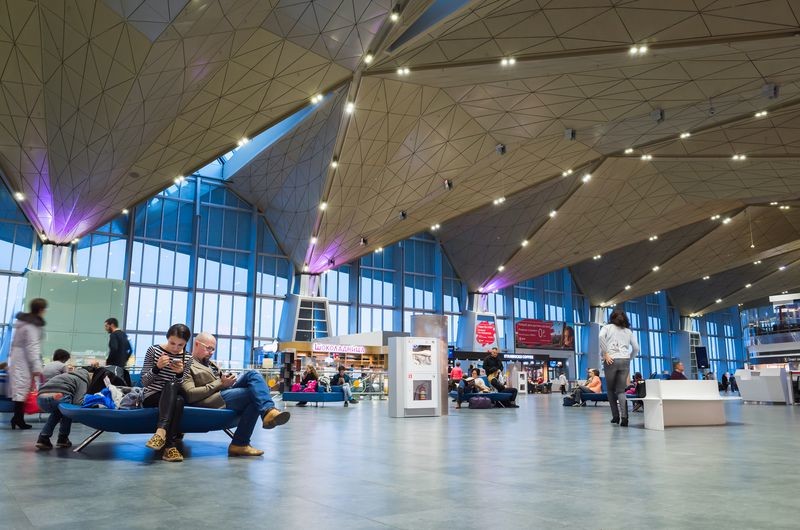 Чтобы войти в аэропорт, надо пройти проверку. Багаж просветят, а вы пройдете через рамки металлоискателей. Однажды перед Новым годом я везла хлопушки. Они так и остались в аэропорту — их на борт не пропустили. Здесь есть Макдональдс - последний шанс бюджетно перекусить перед дорогой, он находится в зоне вылета, до того, как пойдете на паспортный контроль.