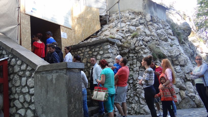 - Толпы туристов. Не случайно мы приехали в Бран ранним утром, и у замка еще не успел вырасти «хвост» в виде очереди. Когда мы выходили, он был уже внушительной длины.