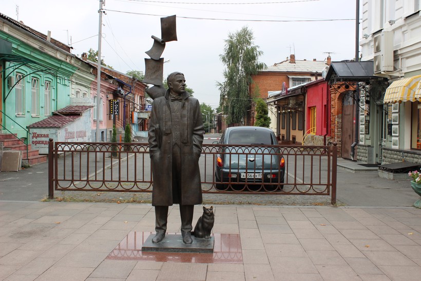 Вообще от архитектуры города я поражена, можно гулять по обычным улицам, прошу заметить, не центральным, и удивляться, так как везде ты встретишь какой-нибудь памятник: писателю, или Ленину, или мифическому существу, или просто чей-то особняк в прошлом, и всё это дополняет неброское освещение.