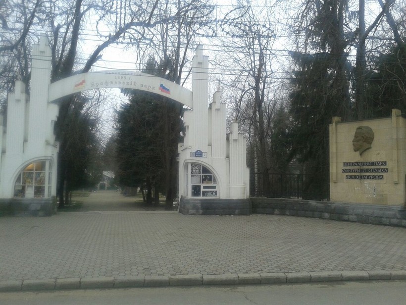 Все улицы настолько озеленены, что мы не заметили, как плавно подошли к центральному парку культуры и отдыха, посвященный осетинскому поэту К.Хетагурову.