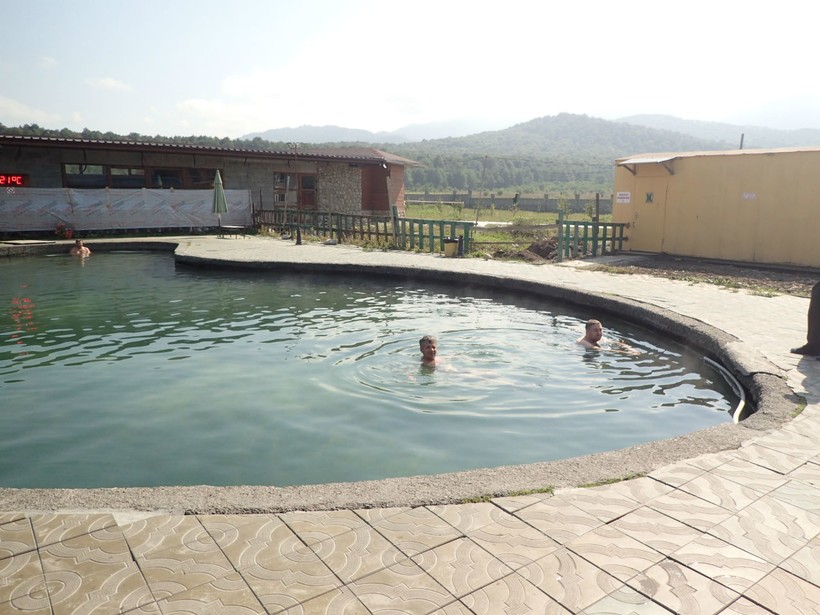 Приехали мы в Бирагзанг, вход 100 рублей с человека за час, часа вам вполне хватит. Есть где переодеться и перекусить. Но нам было не до этого. Вода изумительная! Бассейн с очень мягкой, кстати, лечебной минеральной водой. Первое время, конечно, не привычно, так как температура 45 градусов, глубина примерно метра – полтора, но потом прогревается всё тело до косточек, чувствуешь легкость в каждой части, а спится просто изумительно!