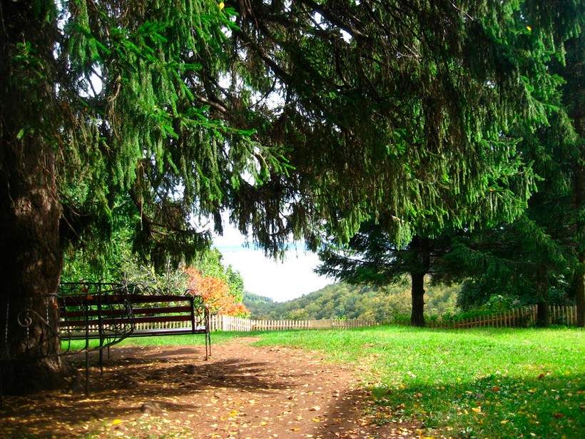 Это красивый дом-дворец со своим личным парком, аллеей с экзотическими деревьями, кустарниками. Есть там «голая поляна», якобы на ней ничего не растёт и всё из-за очередной мистики, но нам этого никак проверить не удалось бы, так как мы всего здесь на день, поэтому мы просто поверили, что это не уловка.