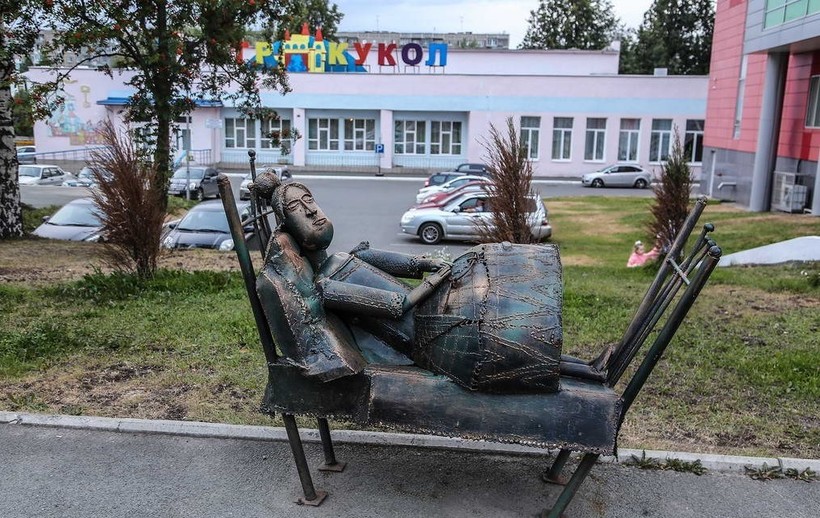 Близ кукольного театра я обнаружила весьма забавную скульптуру. Выглядела она очень, я бы сказала, абстрактно. Слабо понятно, кто это и что скульптор хотел сказать зрителям, но выглядит конструкция очень привлекательно.