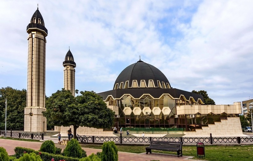 Прямо недалеко от автовокзала находится сквер милиции, в котором советую посетить Соборную мечеть Нальчика – относительно новое, но очень красивое и немного необычное по своему внешнему виду сооружение. По другую сторону сквера в скором времени должен быть установлен памятник 300-летию Канжальской битве, а пока же там красуется только плита с соответствующей надписью.