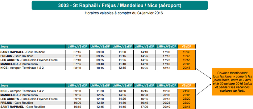 Прямо от аэропорта Ниццы курсируют автобусы фирмы Varlib, маршрут № 3003 доставит вас от первого или второго терминала до центра города Сан-Рафаэль примерно за час-полтора. В самом городе у автобуса достаточно много остановок, поэтому я бы советовала предварительно ознакомиться с маршрутом, вдруг нужное вам место находится на пути следования автобуса.