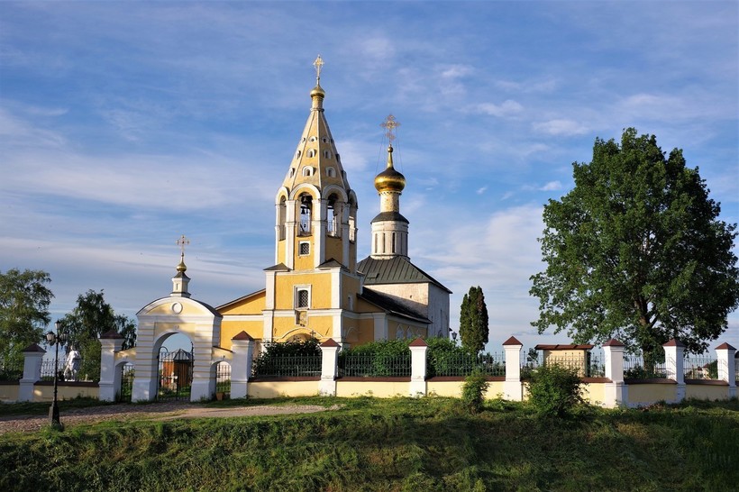 Пока мы гуляли по берегу реки Волги, увидели церковь Рождества Богородицы.