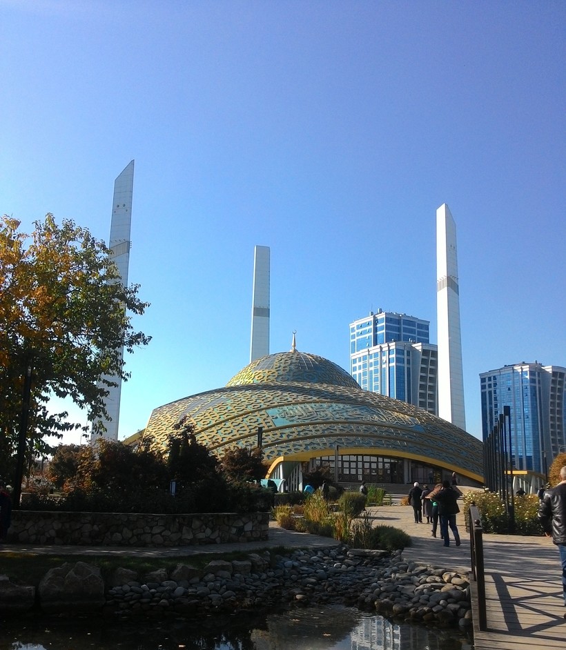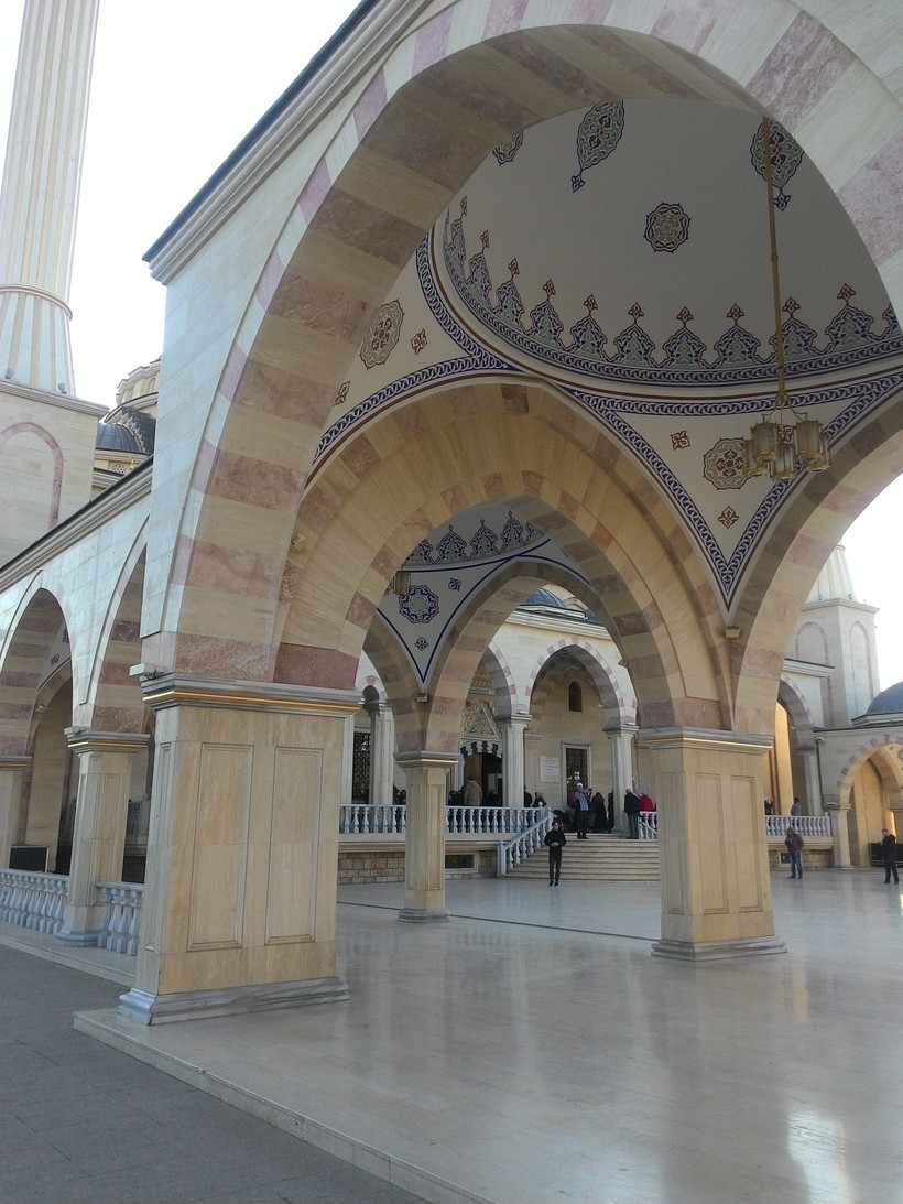 Сама мечеть довольно больших размеров, она выполнена в стиле хай-тек – и это удивительно, видеть такие вещи в довольно консервативной и традиционной Чеченской республике для меня было несколько необычно. Но нужно отдать должное архитектору, мечеть очень красивая, а небольшой парк, что окружает ее, только придает ей красоты. Словом, если собираетесь в Грозный, стоит заехать и сюда, не пожалеете.