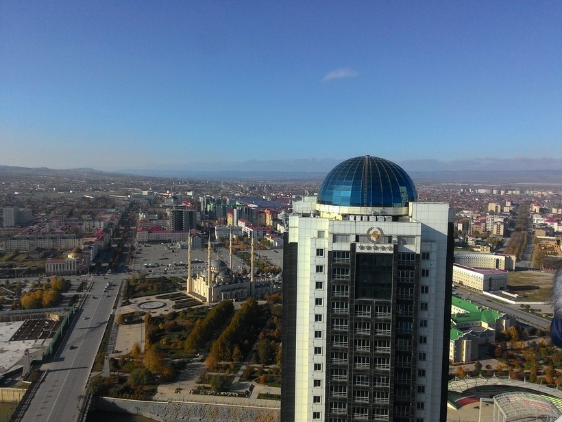 На одном из небоскребов комплекса «Грозный-Сити» есть обзорная площадка, откуда открывается очень неплохой вид на город, но, что самое главное, также и на резиденцию Рамзана Кадырова, которую иначе увидеть едва ли получится. Снимать ее, к сожалению, запрещено, там стоят смотрители, которые могут заставить вас удалить фото, если заметят, что вы нарушили запрет.