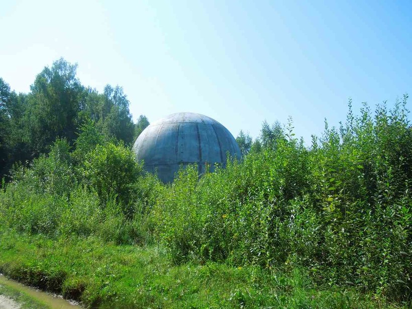 Это огромный радиопрозрачный купол, стоящий посреди леса. Внутри мощная акустика, многократно усиливающая любой звук. Пролезть внутрь можно через отверстие, которое не так давно неумные люди зачем-то расширили. Впрочем, пока акустика шара сохраняется.