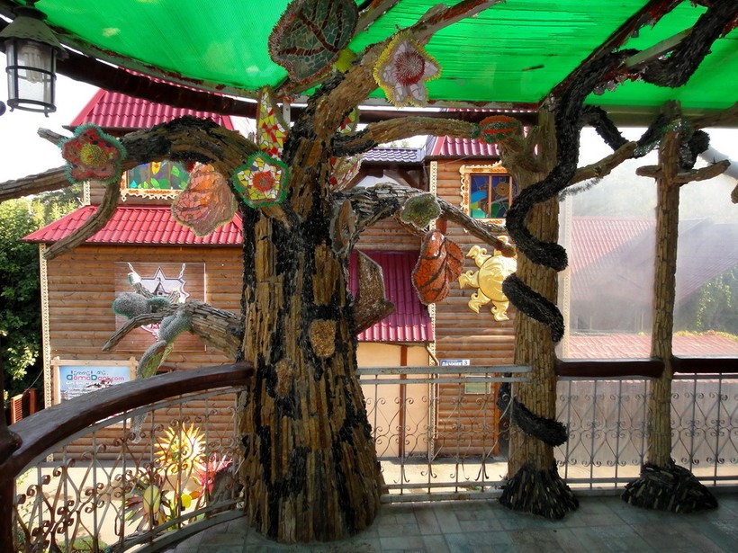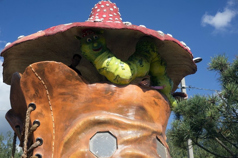 Встречал нас добрый дядя Стёпа-милиционер, по пути нас приветствовали и другие персонажи сказок и мультфильмов, тут нужно быть бдительным – они могут быть и на деревьях, и в кустах. А голова Черномора просто сразила наповал, как будто из льда, внутри камень непонятного происхождения. На территории очень приятная обстановка – газон, плетённый забор, везде фонтаны и пруды. Я очень советую провести здесь время!