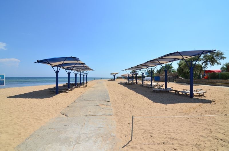 Конечно, кабинки для переодевания тут были, но я, посетив одну такую поначалу, потом решила, что от переодеваний я, пожалуй, воздержусь. Урны есть, но, к сожалению, не все владеют навыками их использования, что печально. Можно взять зонтик и лежак за вполне умеренную плату. А вот с клозетами беда полнейшая. Мне кажется, в Должанской пока очень отдаленно представляют, что такое биотуалеты и пользоваться приходилось весьма примитивными комнатами по типу "сортир".