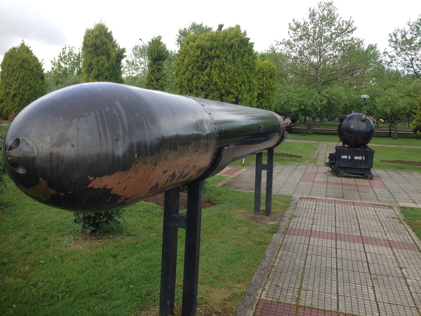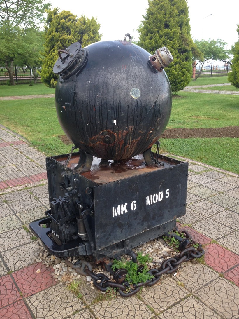 Корабль стоит на причале в местном военном музее под открытым небом, поэтому прежде чем подняться на борт мы прошлись по парковой территории, на которой располагаются мины, пушки и другие орудия, использовавшиеся в период правления Османской империи. Напротив корабля, кончено, имеется памятник спасителю Ататюрку, без него не обходится ни одно подобное место.