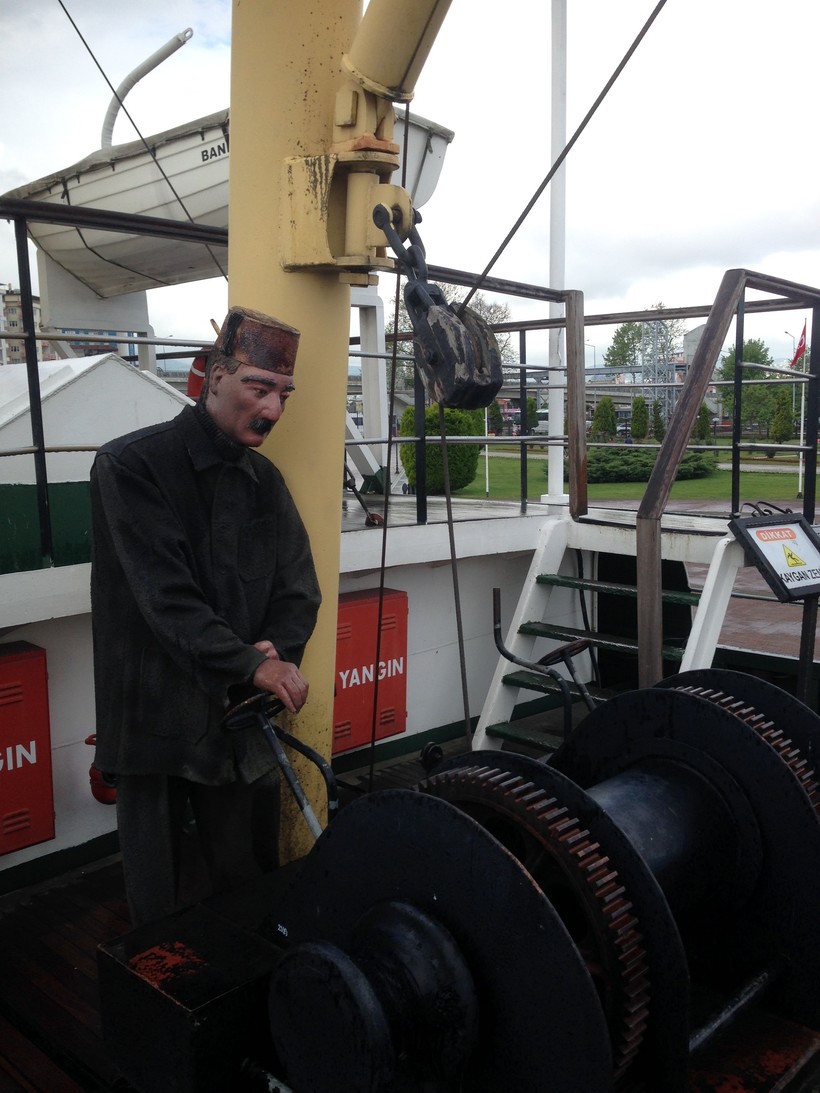 На самом деле Бандырма - восстановленная копия, настоящий корабль давно канул в небытие. Поднявшись на палубу в первую очередь мы заглянули в капитанскую рубку, где восседает сам отец турок (фамилия "Ататюрк" именно так и переводится) со своими друзьями (в реальности их было 18). Прогулявшись по верхней палубе и наделав кучу фотографий, мы спустились на нижнюю палубу. Там расположился музей первого президента. Интересна данная экспозиция будет тем, кто ни разу не бывал в Анкаре и мавзолее Ататюрка - Аныткабир, так как именно в этом месте находится самое большое собрание его личных вещей. В целом, на этом посещение заканчивается. Всего мы потратили минут 30-40 на осмотр корабля с музеем.