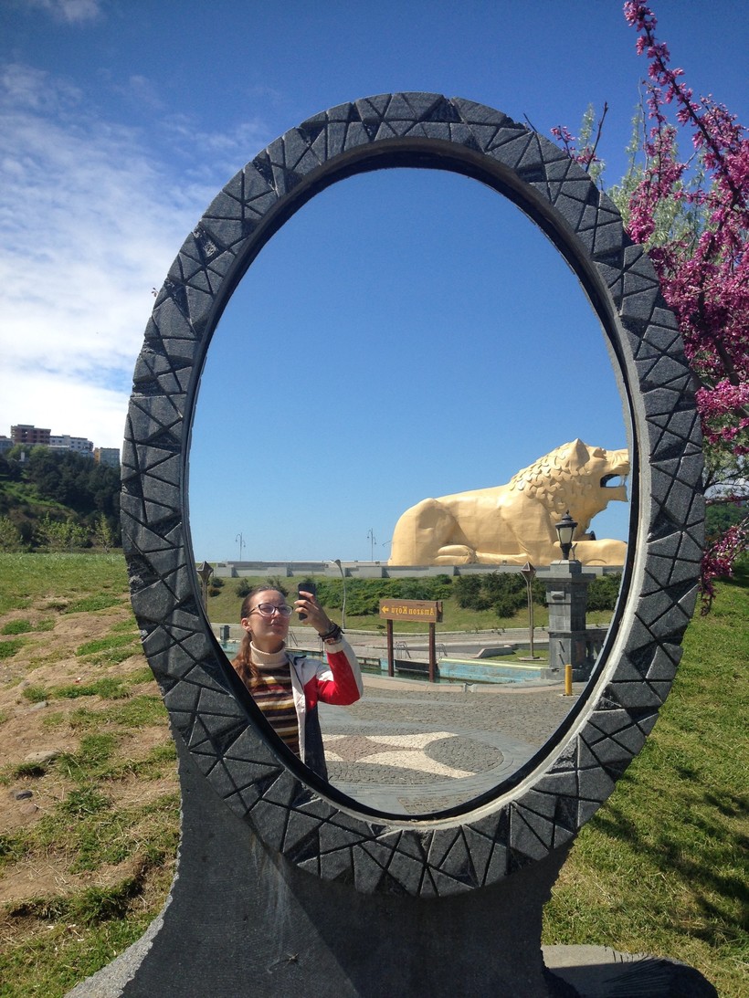 На набережной Баты парка стоит большая статуя Амазонки, а по ее краям два льва с распахнутой пастью. Внутри одного животного мы взглянули на еще одну инсталляцию: женщины на львах убивают мужиков в бою, второй лев был закрыт. Кстати сама набережная очень живописная, чуть поодаль от берега есть конюшня и фуникулер. Последний приравнивается тут к общественному транспорту, поэтому за проезд мы отдали всего три лиры на каждого.