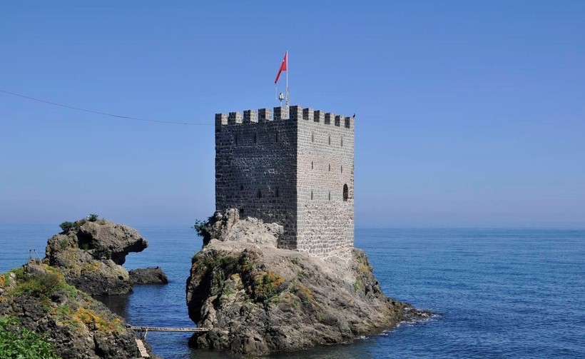 Узнав от работника вышеуказанного музея о наличии в Ризе собственной Девичьей башни (самая знаменитая расположена в Стамбуле посреди Босфора) мне конечно же понадобилось ее посмотреть. Жаль, что внутрь никак не зайти, почему-то из нее музей не сделали. Более того, никто толком не знает для чего именно она была предназначена, так как упоминаний о ней в исторических османских летописях не сохранилось. Известно, что она была создана в 13 веке и предположительно использовалась в качестве сторожевого поста, так как расположена на скале, окруженной в настоящие дни водой. Посмотреть на нее можно только со стороны.