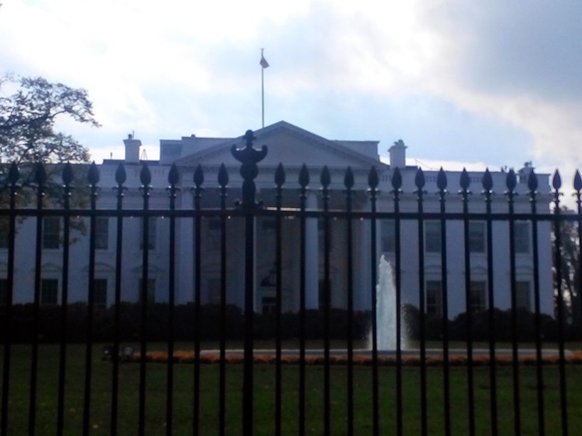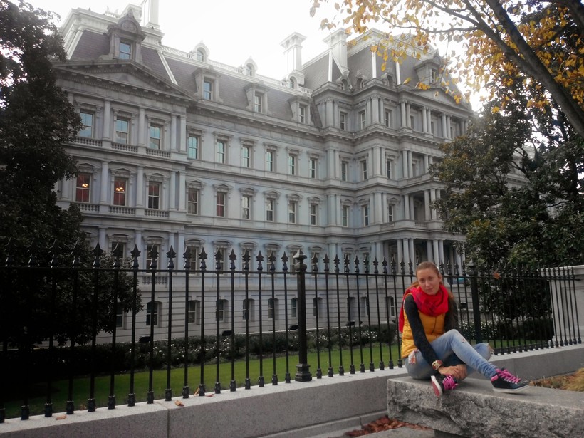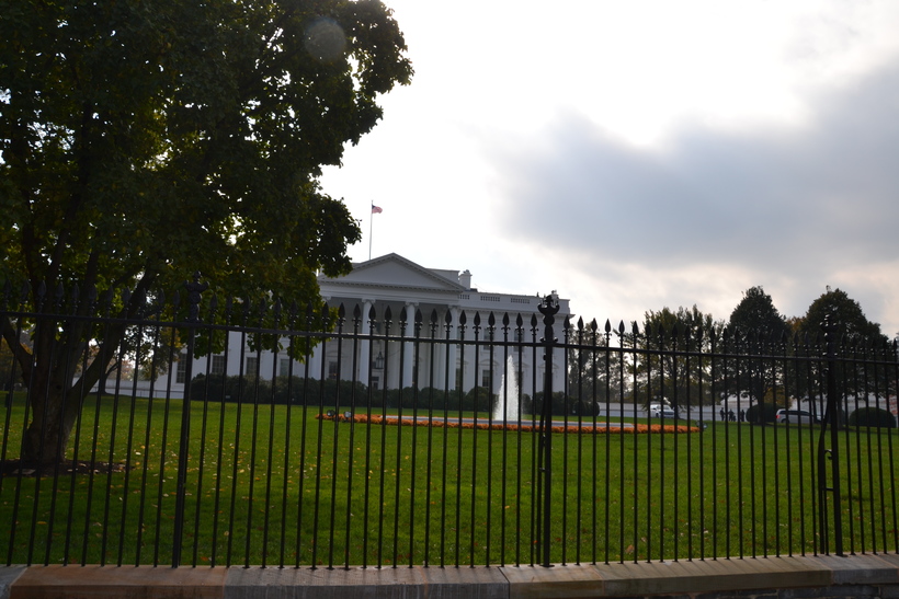 Нам очень повезло с погодой - светило солнце, лучи которого отлично прогревали осенний прохладный ветер, поэтому в первую очередь мы отправились поглазеть на тот самый Белый дом. Он и правда белый, только больно уж маленький оказался, я его представляла себе выше и помпезнее.