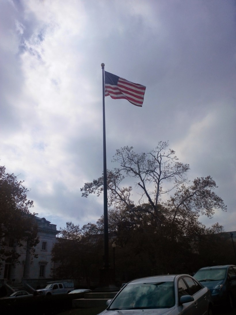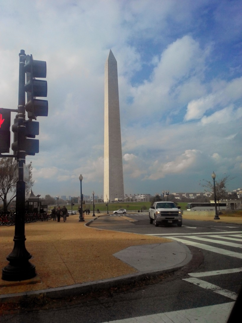 Конечно, никак нельзя пройти мимо знаменитого белого обелиска, устремившегося острым кончиком в небеса. Это монумент Вашингтона, который как оказалось строился на деньги горожан. Вокруг колонны расположены 52 шпиля, каждый из них увенчан флагом определенного штата. На верхушку можно подняться на лифте, а для тех кто любит ходить пешком, то есть таких, как я, есть дофига ступенек.