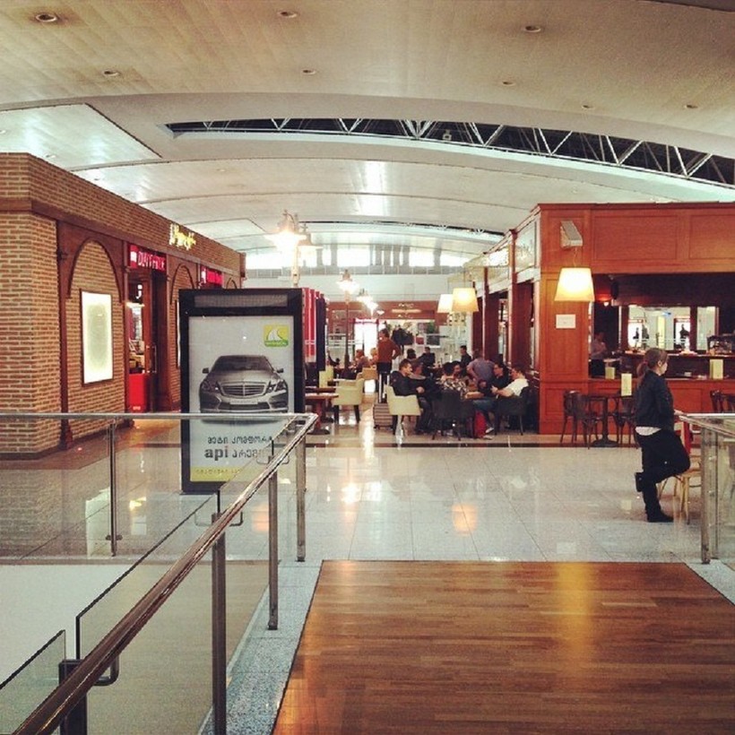 Стойки регистрации при вылете находятся на первом этаже. Здесь же есть офисы авиакомпаний, летающих в Грузию, несколько сувенирных магазинчиков и пара кафе. Цены, надо сказать, не самые дешевые. На втором этаже, после досмотра ручной клади и прохождения паспортного и таможенного контроля, находятся: