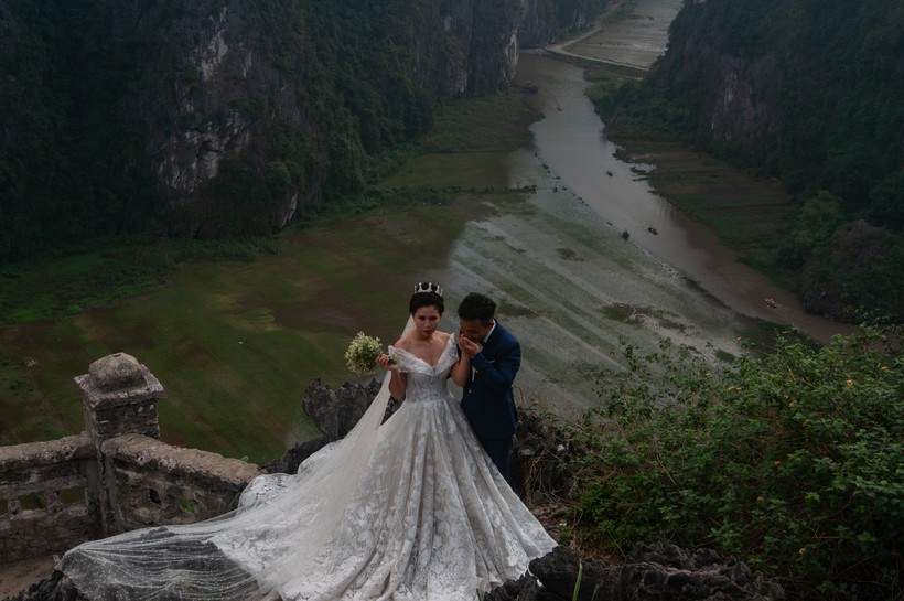 Свадебная съемка номер один, свадебная съемка номер два, группа туристов из Китая пытается по очереди сделать крутую фотографию на фоне ошеломительного вида и бесконечный поток людей. Что касается вида, так он правда великолепный. С одной стороны любуешься на речку, окруженную большими горами, с другой чувствуешь силу, смотря на маленькие домики внизу.