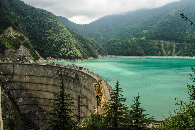 После Ушгули вторая цель посещения Сванетии была река Ингури. Река горная и начинается от ледников, поэтому у нее просто изумительный насыщенный цвет воды. За самыми красивыми видами советую ехать к ГЭС, здесь есть арочная плотина, она хоть и режимный объект, но туристов пускают.