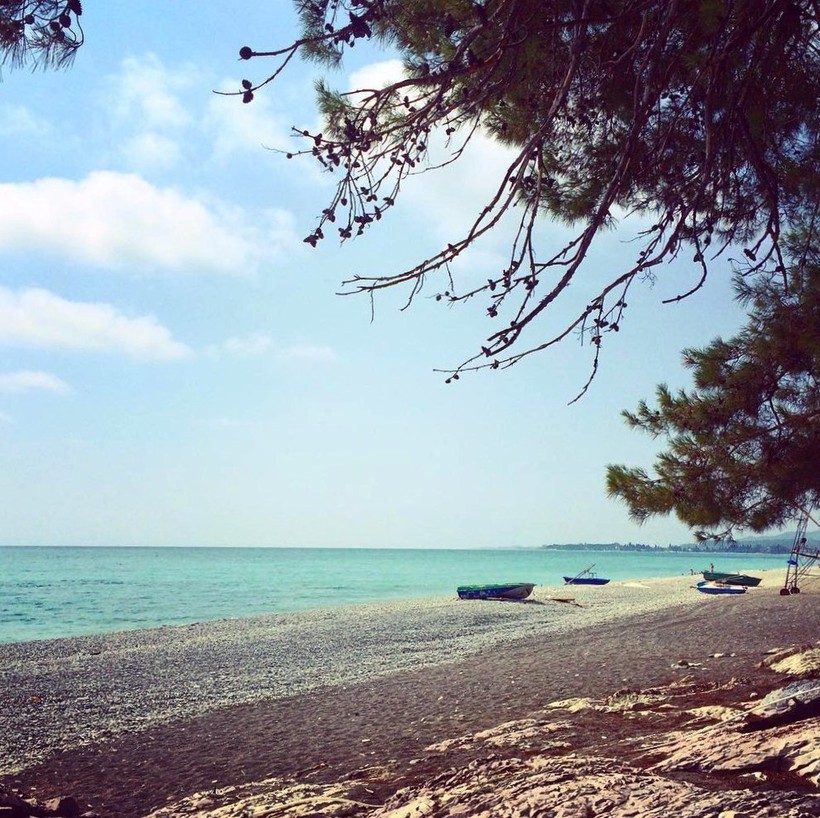Как я уже говорила, посёлок – один длинный пляж, в основном, это моя любимая средняя галька, сама вода намного чище, чем в Сочи. Предостаточное количество кафе, где можно купить освежающий коктейль или пообедать. И даже в каждом доме в основном – своя скважина, но совет: от такой смены воды могут быть пищевые расстройства, поэтому переходите постепенно, сначала с бутылизированной.