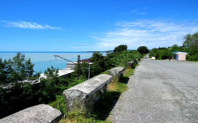 Это самый первый населённый пункт в Абхазии после границы, примерно в пяти километрах. Кстати, совет: если вы не хотите долго стоять на границе, лучше всего её проезжать рано утро, часов в пять-шесть. Кто-то считает его городом, но на самом деле, это посёлок городского типа, который расположен прямо вдоль побережья Чёрного моря.