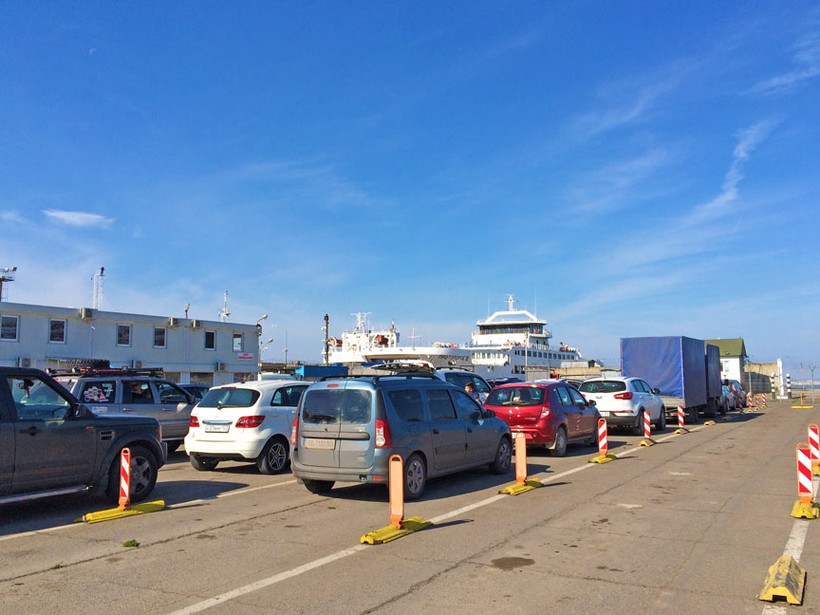Ориентироваться мне помогал онлайн-навигатор, заранее предупреждая о пробках и участках с ремонтом дорог. На подъезде к очереди на паромной переправе я понял, что мои приготовления перед поездкой были не напрасны. Я предпринял следующее:
