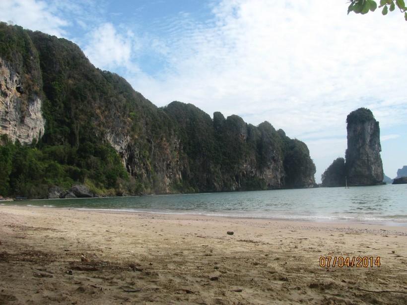 - можно уехать на любые райские пляжи, которые находятся в 20 минутах езды катером. Собственно именно так мы и сделали спустя 4 дня. Пляж Райли стал для нас раем. Просто белоснежный песок в обрамлении высоких скал зрелище еще то! Мы сняли бунгало с огромными тараканами, которые приводили меня в ужас и которых мы выселили сразу же по приезде.