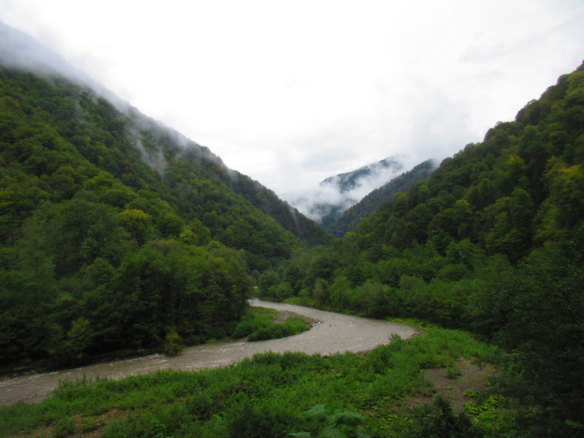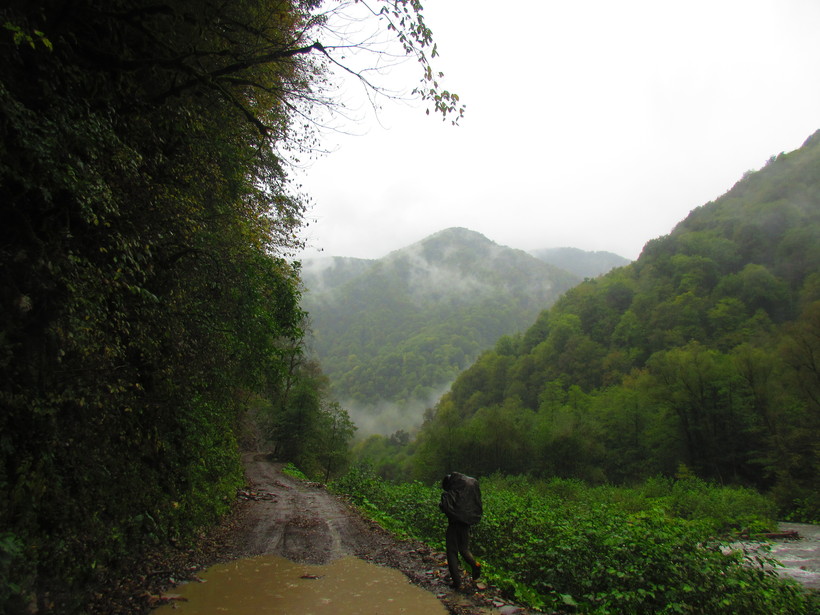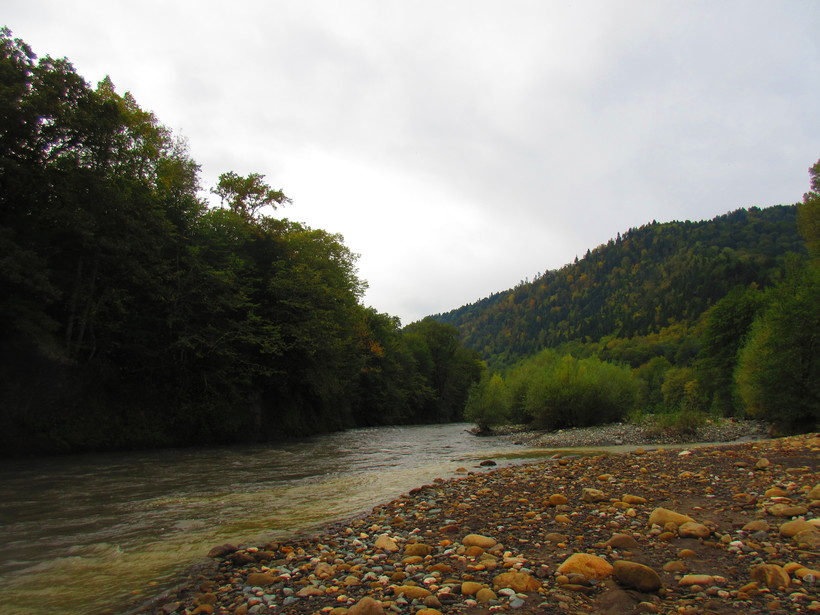 Перейдя реку по строящемуся мосту, наткнулись на лагерь строителей, которые посоветовали переночевать в свободном вагончике. Мы с радостью воспользовались данной возможностью спрятаться от дождя и просушить наши промокшие вещи. Утром приступили к завершающей стадии нашего похода, выход к селу Солохаул, от которого можно доехать до Дагомыса на автобусе.