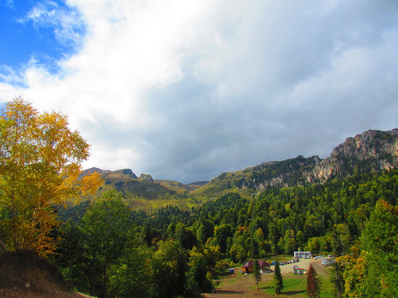 Наше путешествие началось в конце сентября в городе Белореченск, город в Краснодарском крае. Сели на автобус до столицы республики Адыгея - Майкопа, где посетили рынок, чтобы закупиться провизией для похода. Адыгейский , Чечил и Сулугуни все эти сыры здесь великолепны в обеих вариациях (обычный и копченый). Дальше нас ждал автобус до Гузерипля. Ходит он не так уж часто (три раза в день), поэтому заранее узнавайте расписание и планируйте поход на рынок с его учетом, чего мы не сделали, за что и поплатились двумя с лишним часами ожидания. При посадке в транспорт, обнаружилось, что мы не оплатили багаж, свои походные рюкзаки. Друг побежал оплачивать, а я упрашивал водителя не уезжать, пока тот не вернется. Автобус едет достаточно долго около двух с половиной часов, по прибытии в конечный пункт было уже достаточно поздно и купить билеты в заповедник лучше завтра с утра, но в этом даже был плюс, так как одни сутки в заповеднике стоят 300 рублей (с человека от 14 лет и старше), а начинаются и заканчиваются они в 0:00 каждого дня. Для ночевки решили найти место под палатку в лесу рядом с развилкой дороги на заповедник, хотя в поселке много вариантов с заселением.