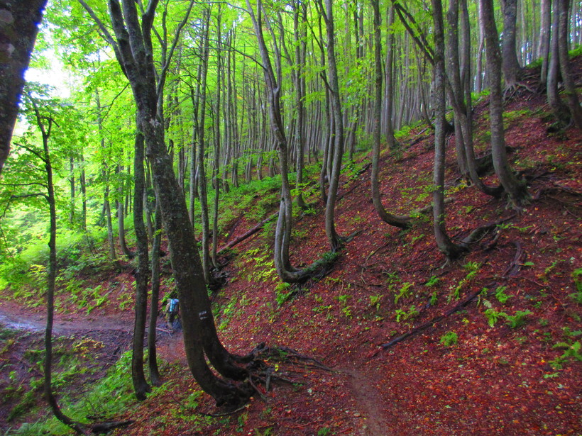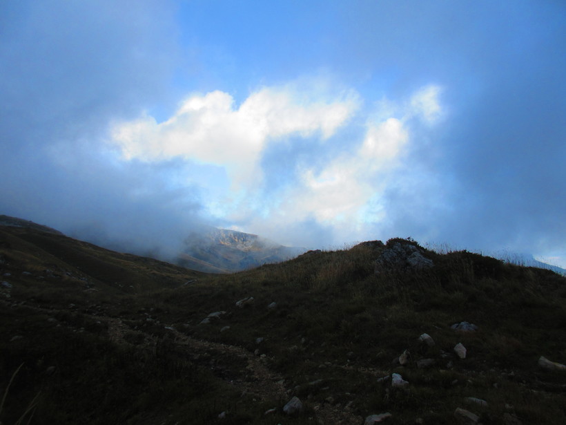 Прошли мимо приюта, решили заночевать на спуске в лесу. Тем более времени до захода солнца было прилично, перекусив двинули дальше. Хотя природа намекала на возможность дождя.