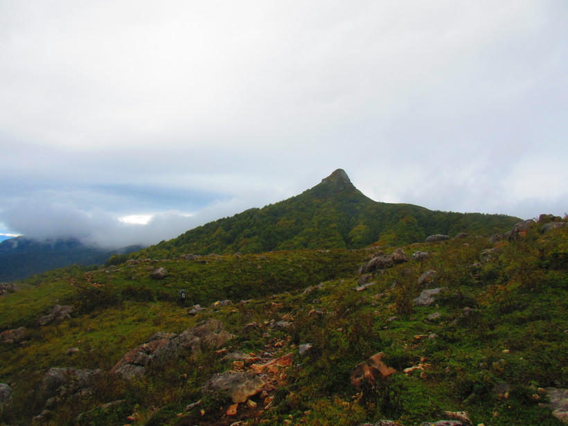 Снова перевал и склон с карстовыми ямами. Красивая гора напоминающая плавник акулы.