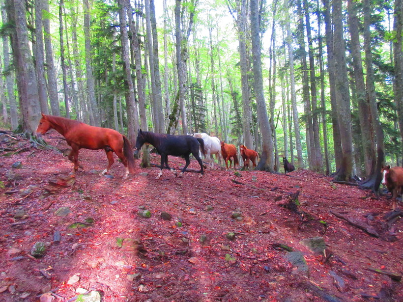 Встретили диких лошадей, они прошли мимо нас и оставили нам возможность любоваться их походом.