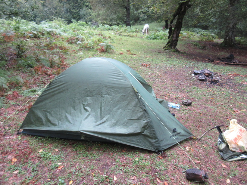 Поговорив с работником приюта и записавшись в его журнал посещений, нашли местечко в одном из крытых деревянных настилов, где уже расположилось много палаток и пришлось ютиться в углу. На территории есть несколько настилов без крыши, но всю ночь шел сильный дождь с ветром и мы не пожалели о своём решении поселиться в тесноте, но с крышей.